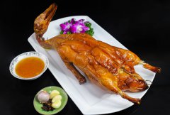 每次路过看到橱窗内, 油光铮亮、昂首挺胸的烧鸭, 总能让人食指大动! 忍不住馋唾水嗒嗒滴 搭配一碗广西人最爱的米粉、 或是开一瓶小啤~ 啊~~~生活本该如此。 学名:广式烧鸭、焖炉烤鸭 出生地:来自于南京(金陵)