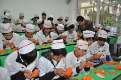 广西华南烹饪学校雕刻课堂 广西华南烹饪学校老师手把手教导学生 厨师人才缺口大就业压力小 进入21世纪,我国餐饮业飞速发展,人才缺口大,据资料显示,月薪数万难求一厨。正是厨师行业的人才缺口大,就业压力小,不