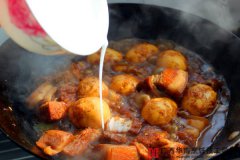 勾芡是厨师烹饪过程中的一道程序,是在菜肴接近成熟时,将调好的粉汁淋入锅内,使卤汁稠浓,增加卤汁对原料的附着力,从而使菜肴汤汁的粉性和浓度增加,改善菜肴的色泽和味道。 勾芡是否适当,对菜肴的质量影响很大